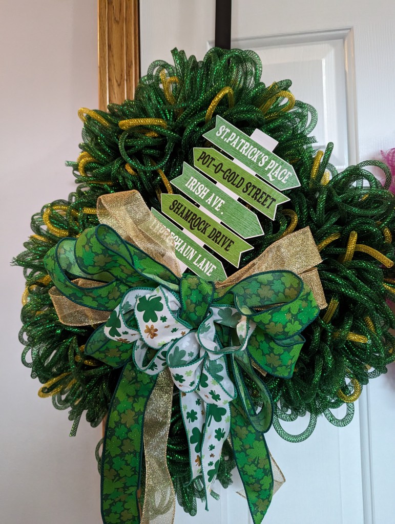 This was my first go at making a wreath/hanging art using mesh tubing. It was SUPER easy to use and looks a lot better in person than I expected. It’s a little bit addictive.